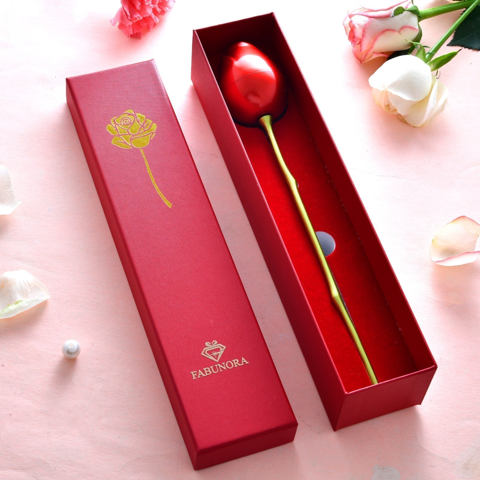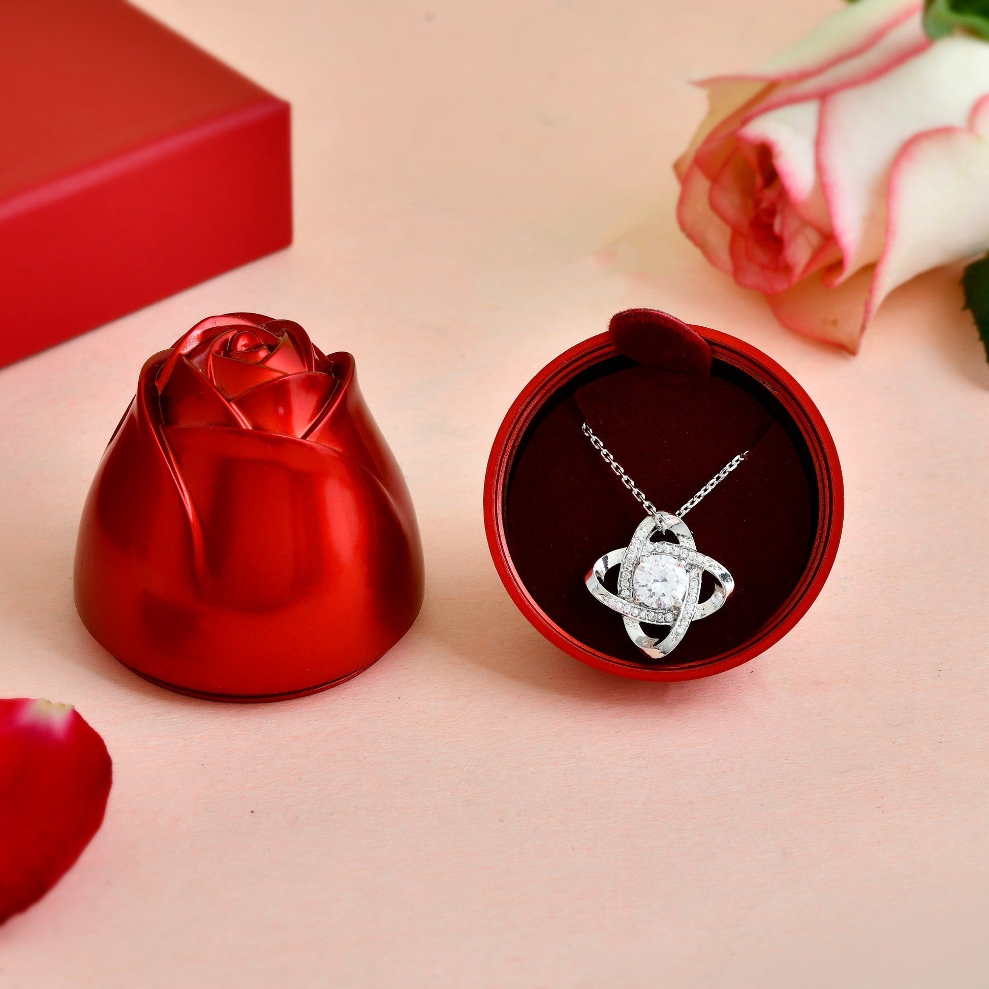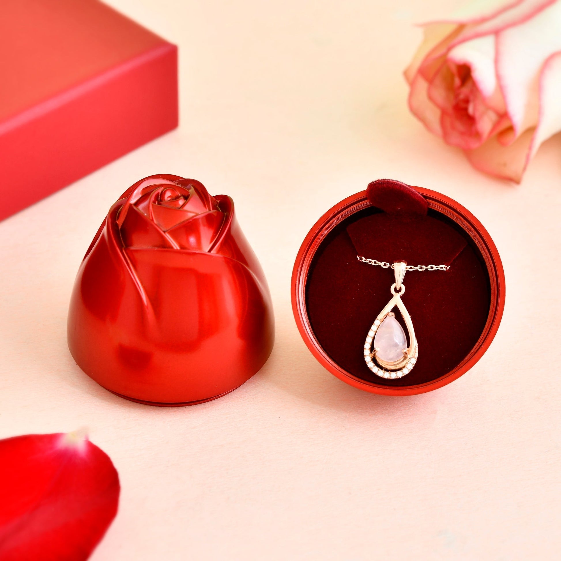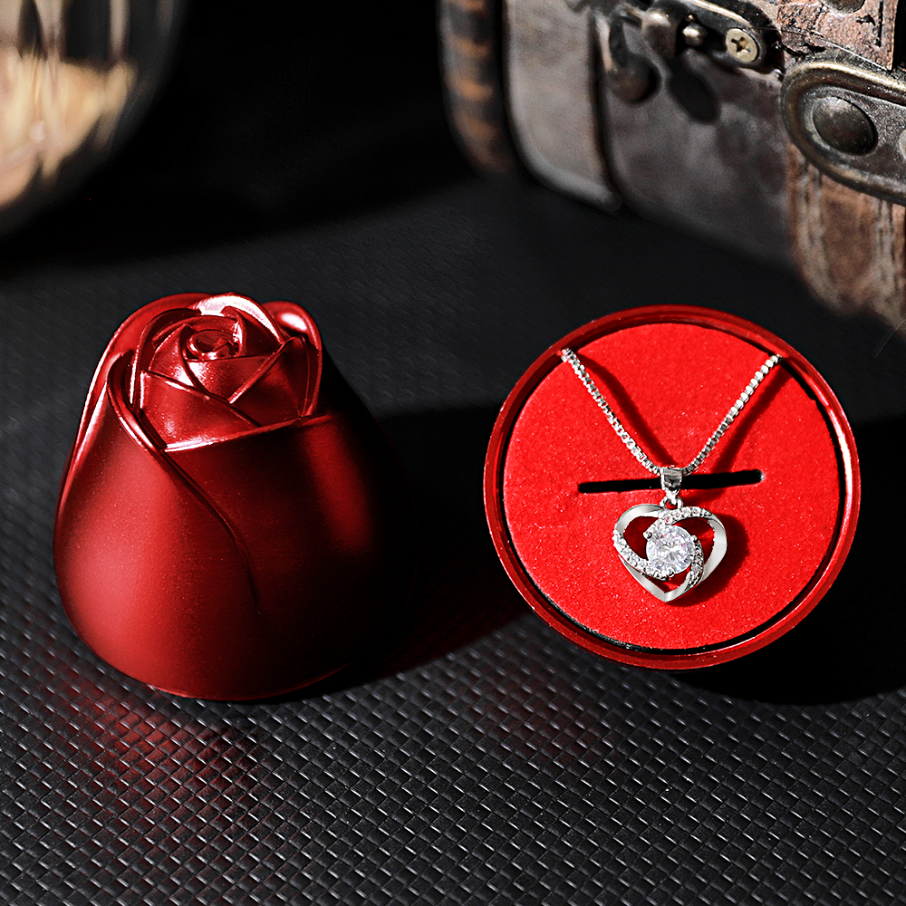 Rózsa szál szív alakú medál nyaklánc ajándék szett