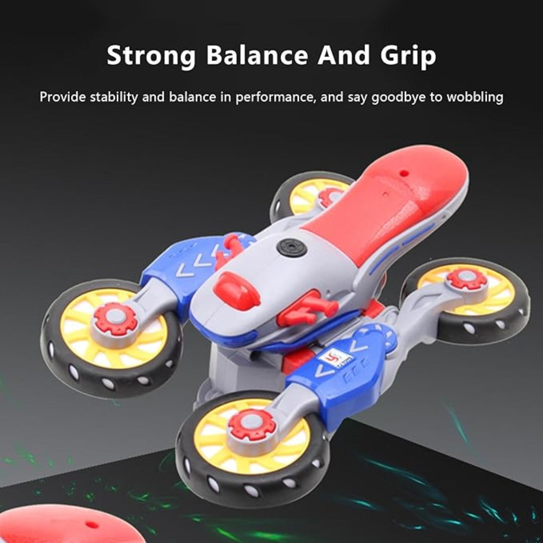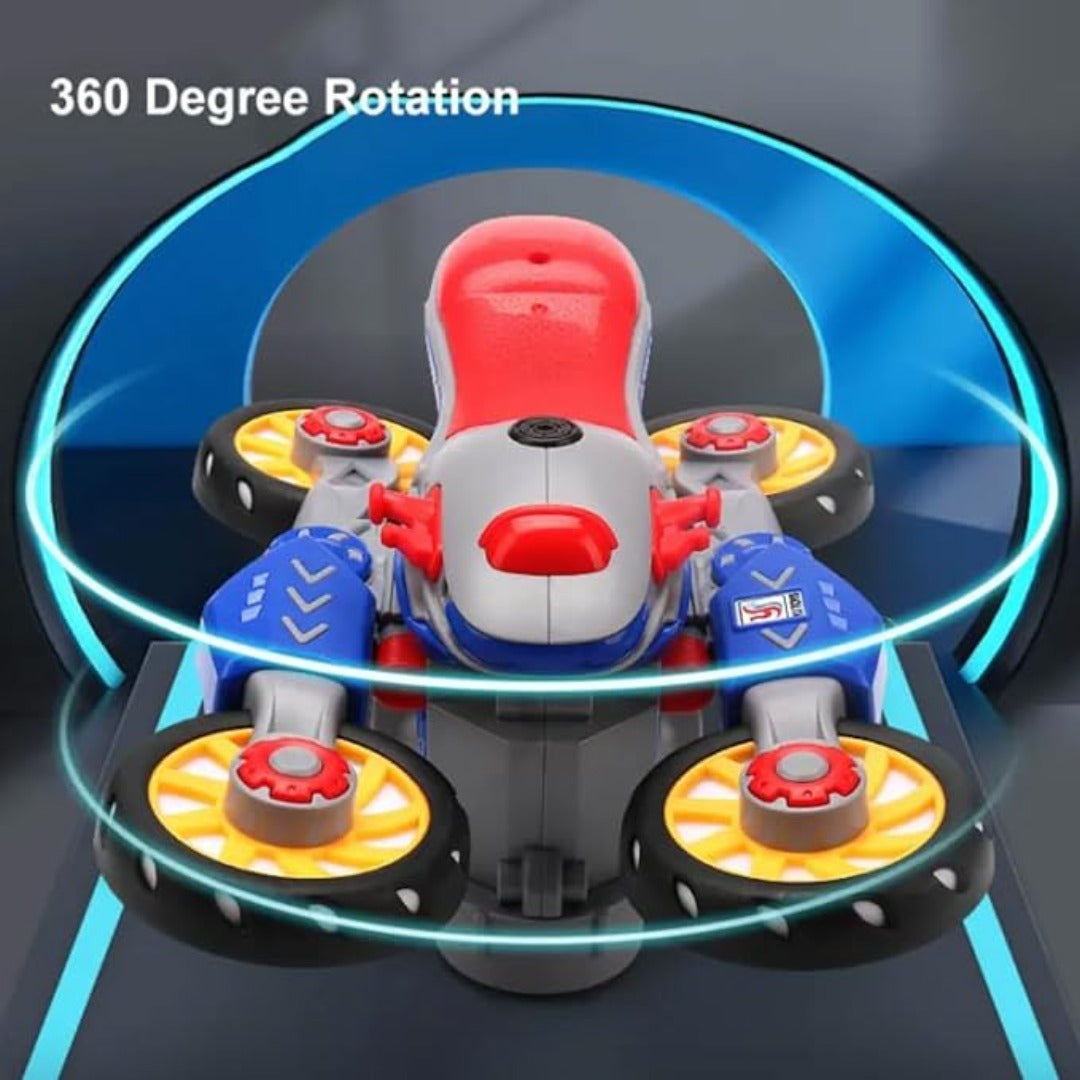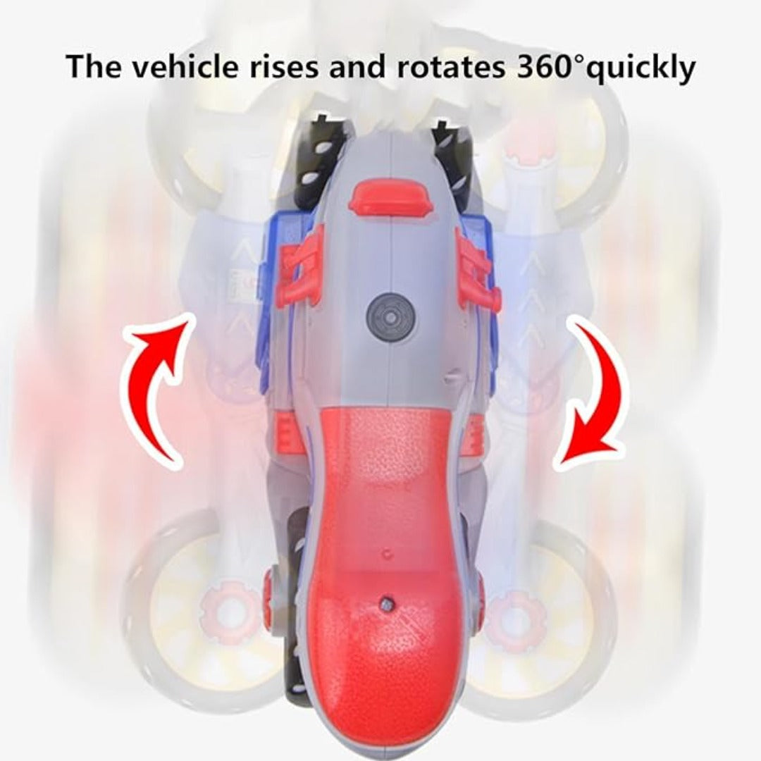 【360 fokos átalakító akció】: Nézze meg ámulattal, ahogy ez a játékmotorkerékpár átalakul, és lélegzetelállító 360 fokos pörgetést hajt végre. A dinamikus kialakítás extra izgalmat ad a játéknak, leköti a gyerekeket és szórakoztatja őket.
