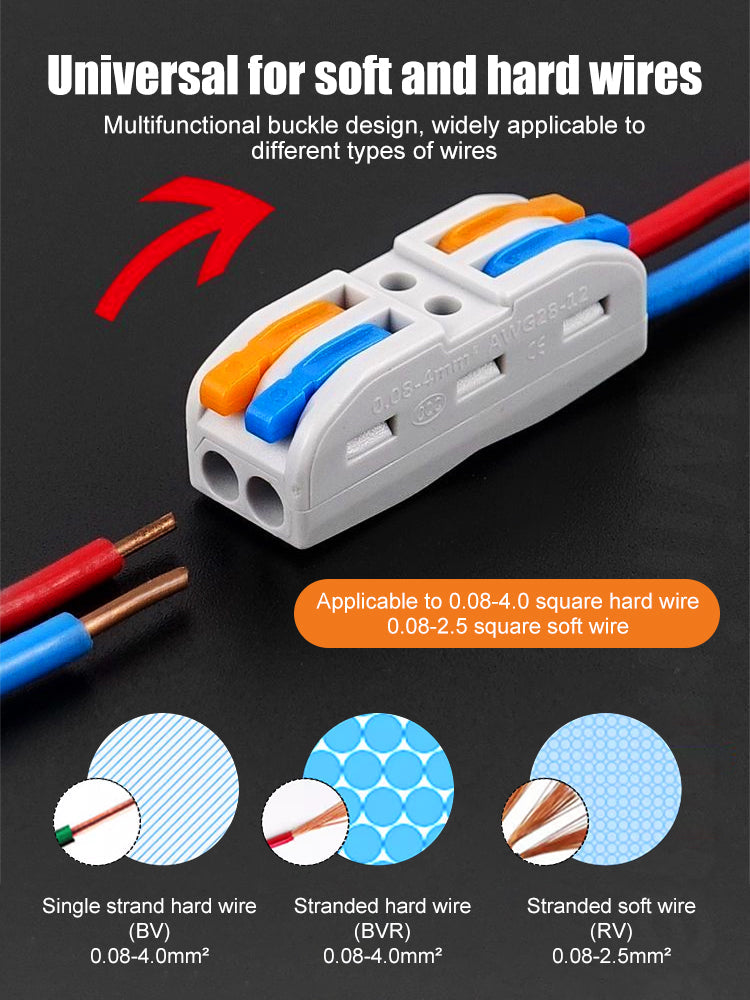 Gyorscsatlakozó, kábelcsatlakozó, univerzális kemény és puha kábelekhez, otthoni és munkahelyi használatra alkalmas, két szín közül választhat