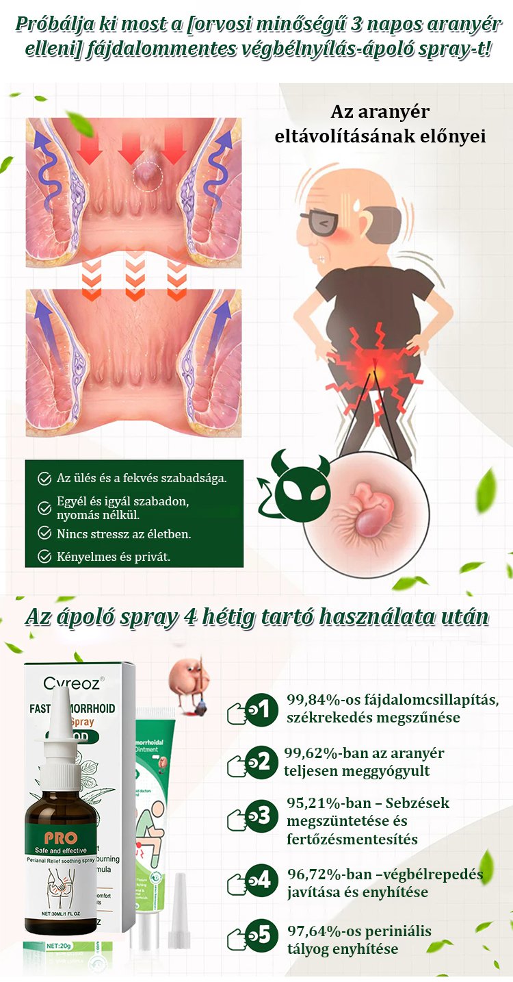 【Orvosi minőségű, 3 napos aranyér elleni kezelés】Fájdalommentes anális ápoló spray