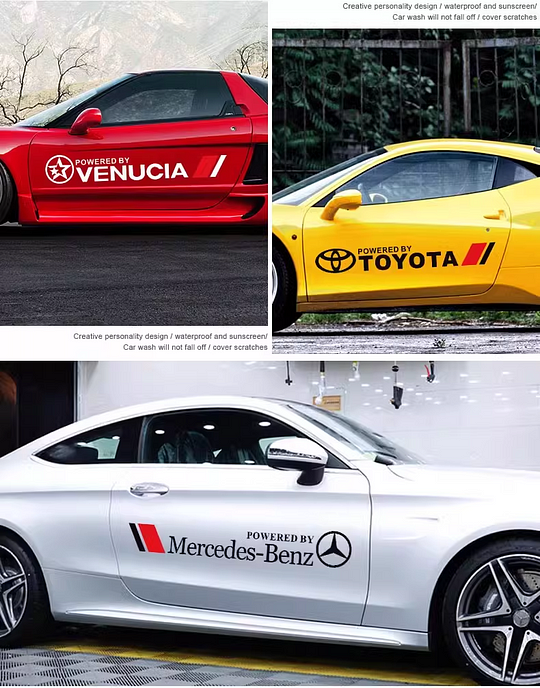 - 2. Dekoráció: A matrica az autó ajtajára, az autó szemöldökrészére van rögzítve