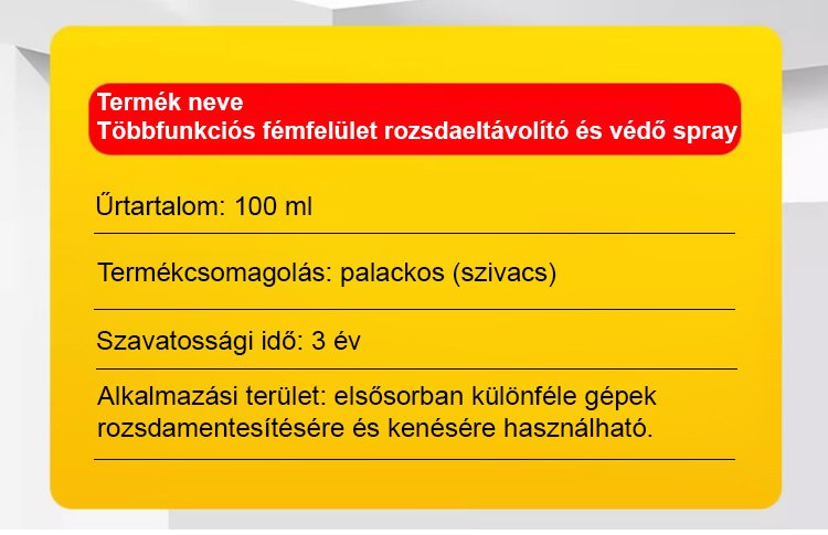 Multifunkcionális fémfelület rozsdamentesítő és védő spray