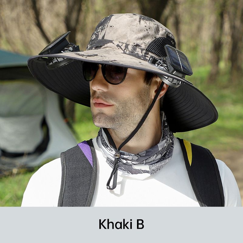 Férfi horgászkalap 2 levehető napelemes ventilátorral